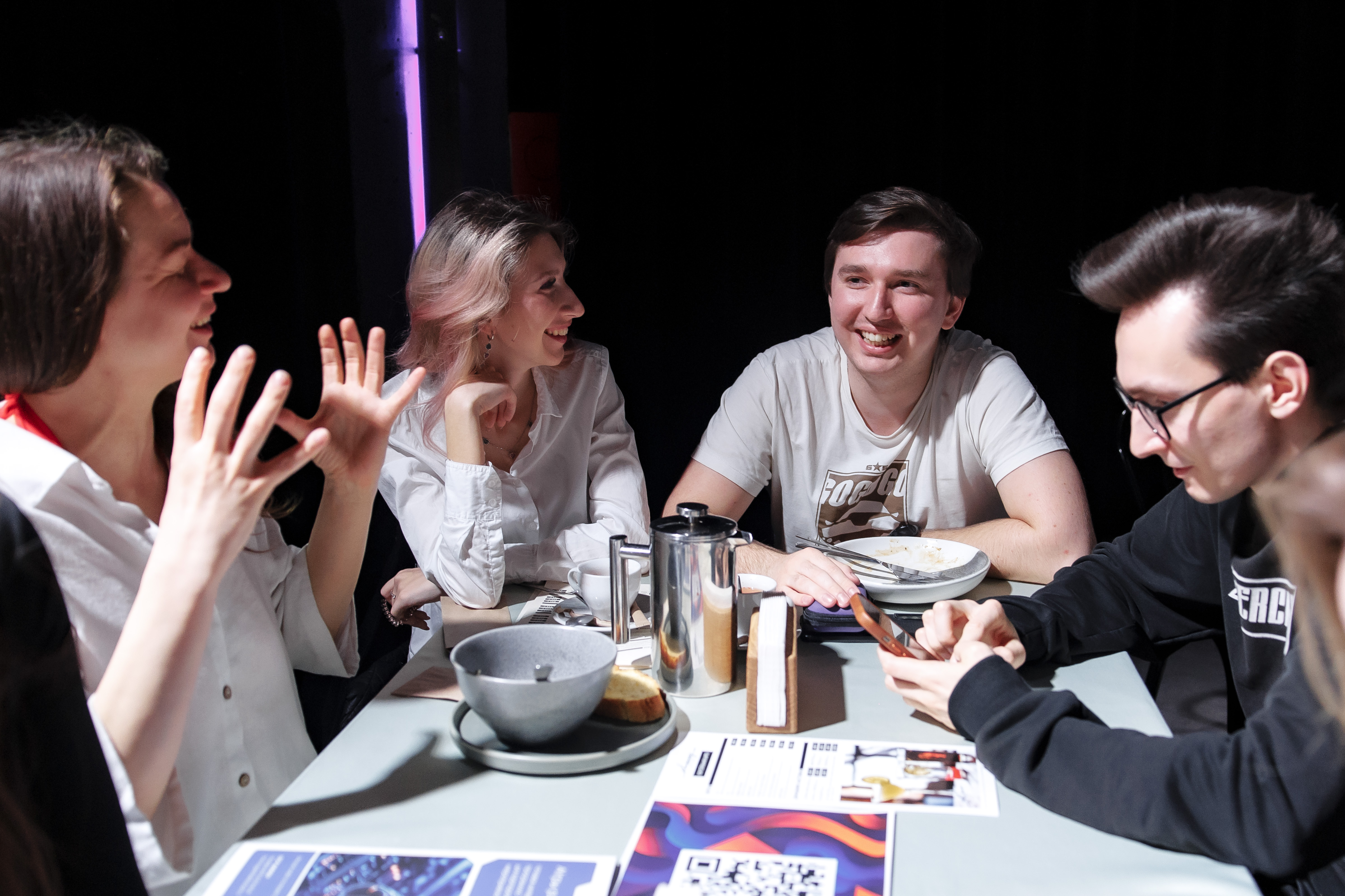 Мы называем это банкетом нового поколения. Гости не просто едят и смотрят шоу. Они в центре события создают контент с помощью нейросетей, смеются, удивляются и становятся героями праздника. Это не скучная лекция, а развлекательная игра, усиленная технологиями, где все участники становятся творцами.