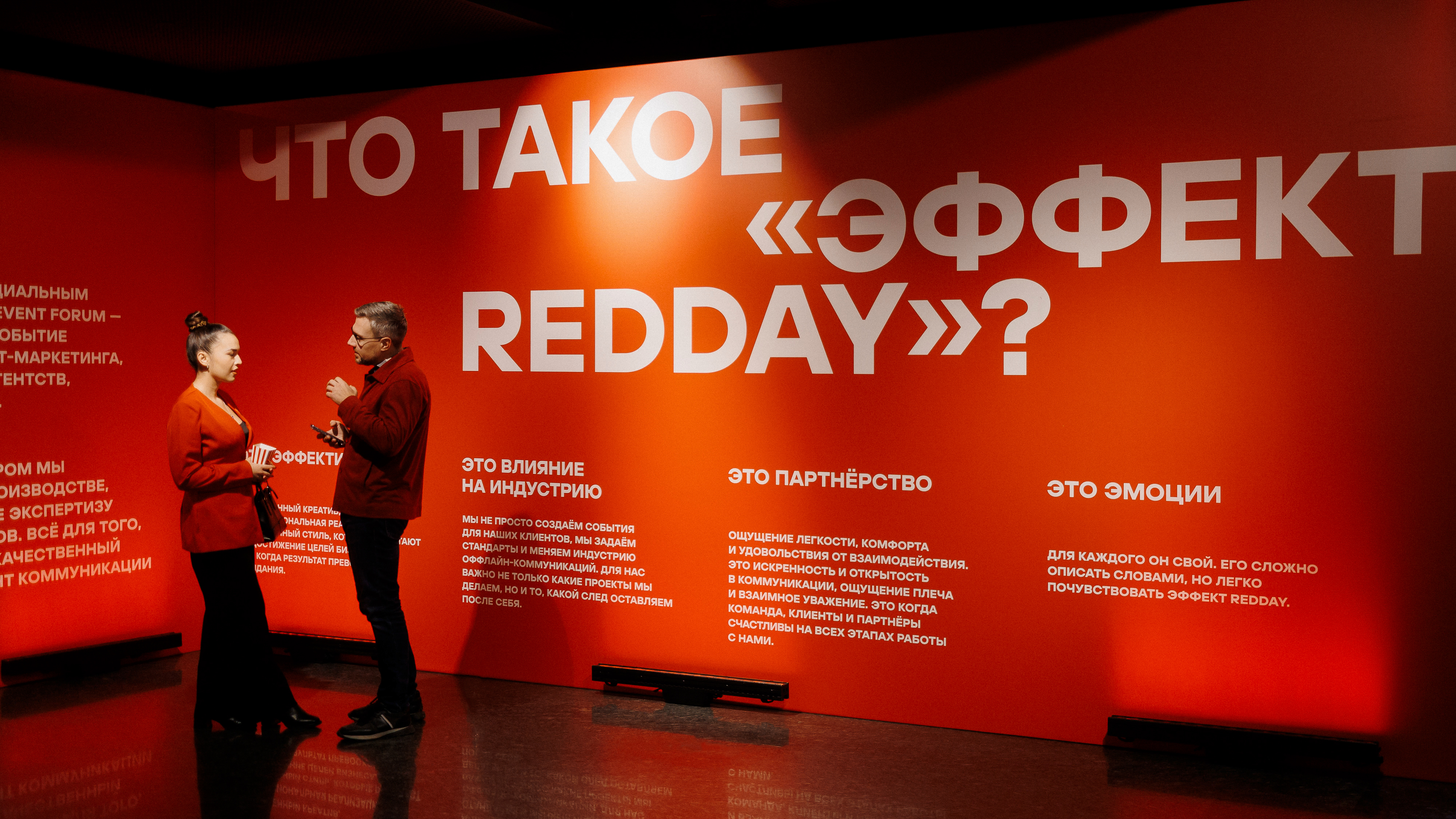 Внутри команды давно сформировался особый подход к работе и взаимодействию в целом — то, что мы и зовем «ЭФФЕКТ REDDAY». Он не имел какого-то конкретного названия, но всегда интуитивно существовал в проектах и за пределами компании. Клиенты, завершая ивент с нами, говорили не только о KPI, но и об особом ощущении спокойствия, уверенности и человеческого отношения. Индустрия вокруг тоже видела, как это помогает формировать другой, особый вайб вокруг команды.