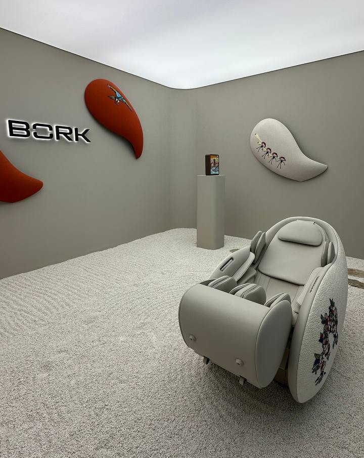 Инсталляция бренда, вдохновленная японским садом камней, стала пространством покоя, в центре которого находится новое массажное кресло, воплощающее функциональную эстетику.