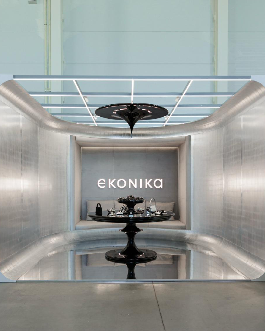 EKONIKA продолжает говорить о моде как о форме искусства. Для COSMOSCOW вместе с архитектурной студией ELENA LOKASTOVA они создали пространство, которое не только отражало эстетический код бренда, но и раскрывало зрителю внутренние процессы обувного мастерства.