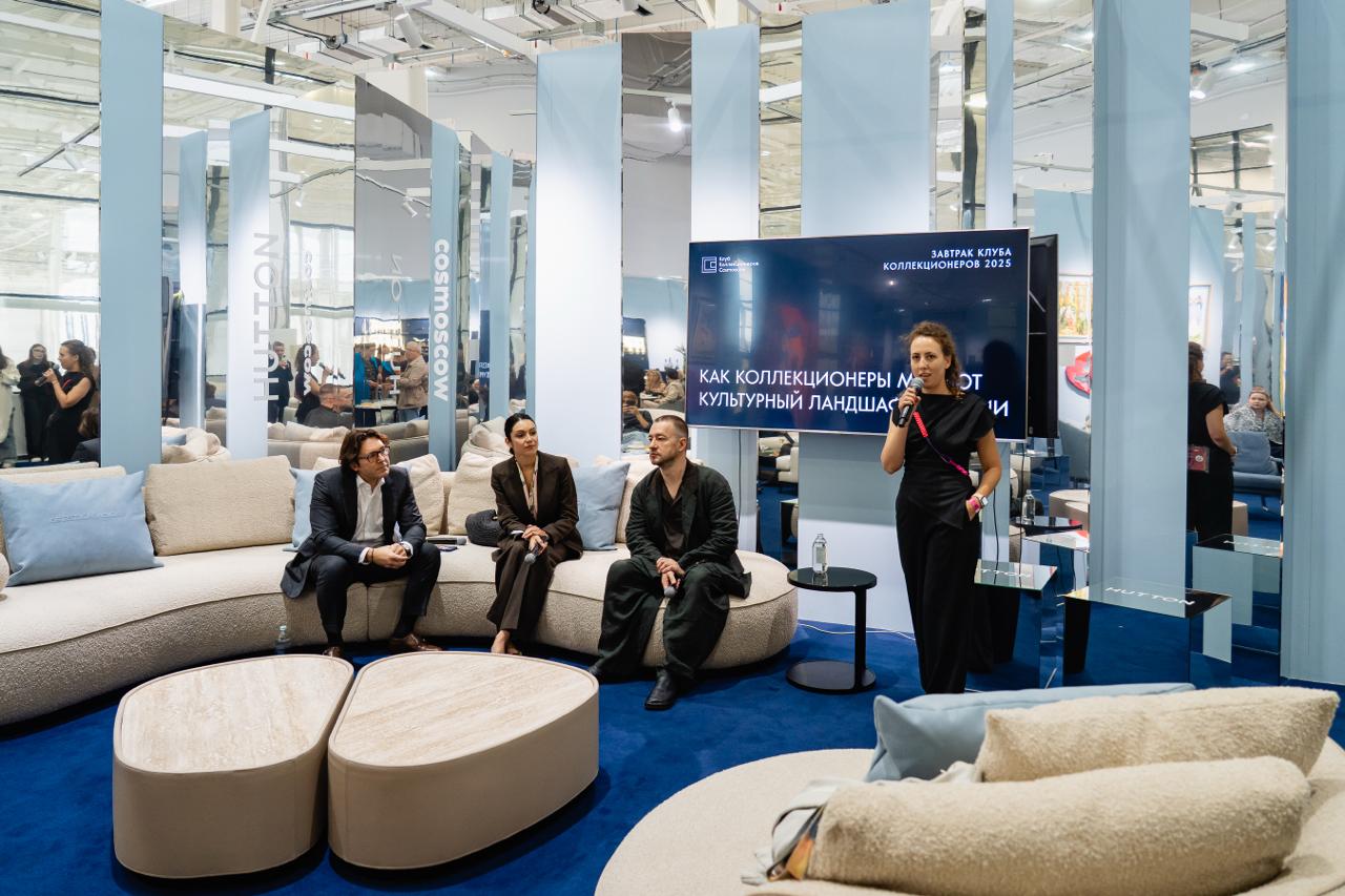 Девелопер Hutton и Cosmoscow представили на ярмарке совместную гостиную Reflections. Ярмарка стартовала именно здесь — с традиционного завтрака партнеров. Также в пространстве прошел завтрак Клуба Коллекционеров Cosmoscow.