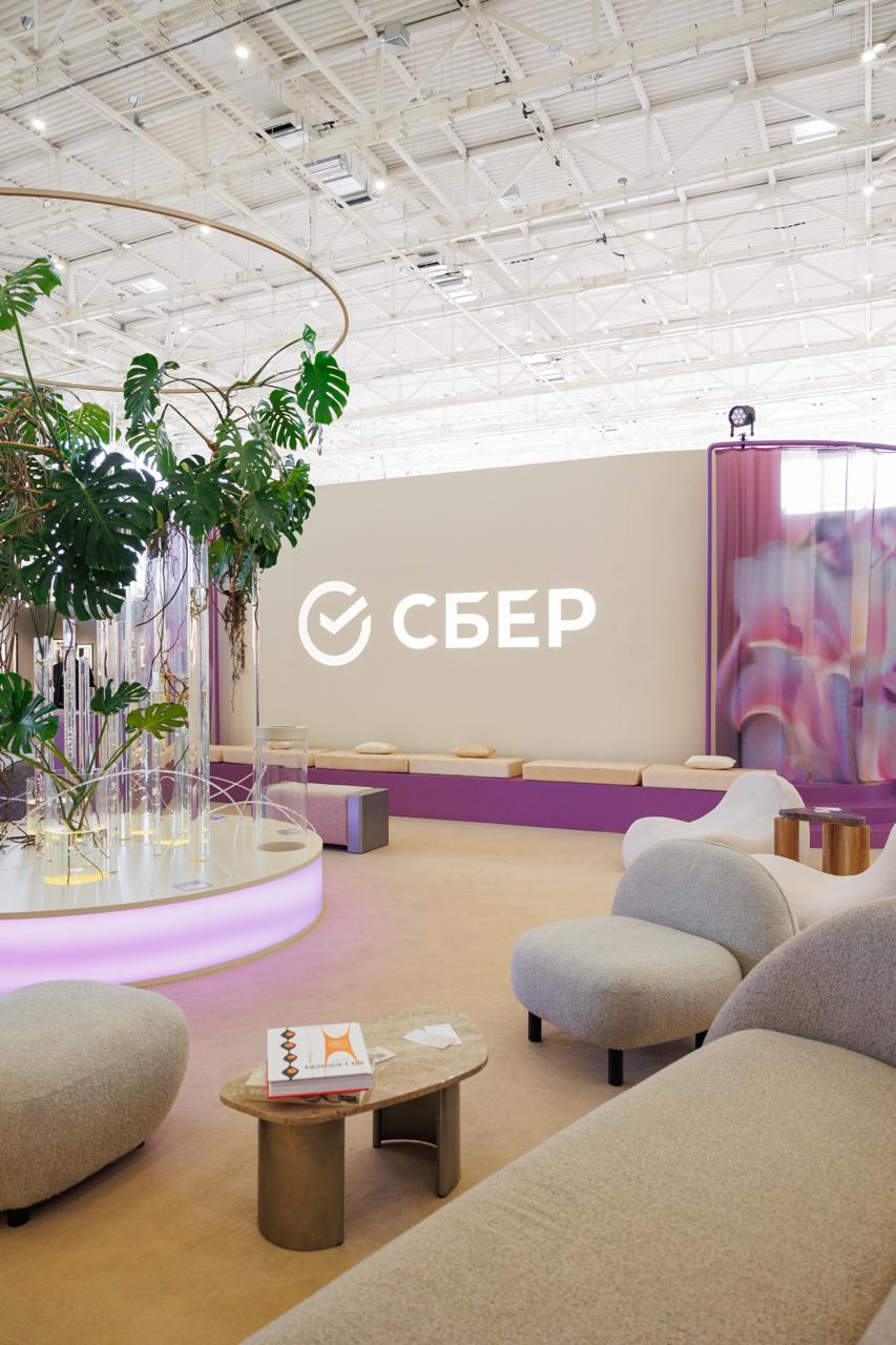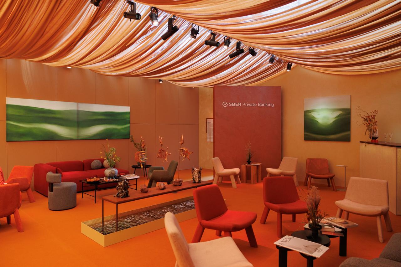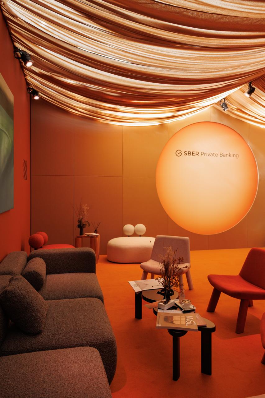 Бренд третий год подряд выступает генеральным партнером Cosmoscow и в этот раз он представил сразу два пространства: лаундж Sber Private Banking и гостиную Сбер.