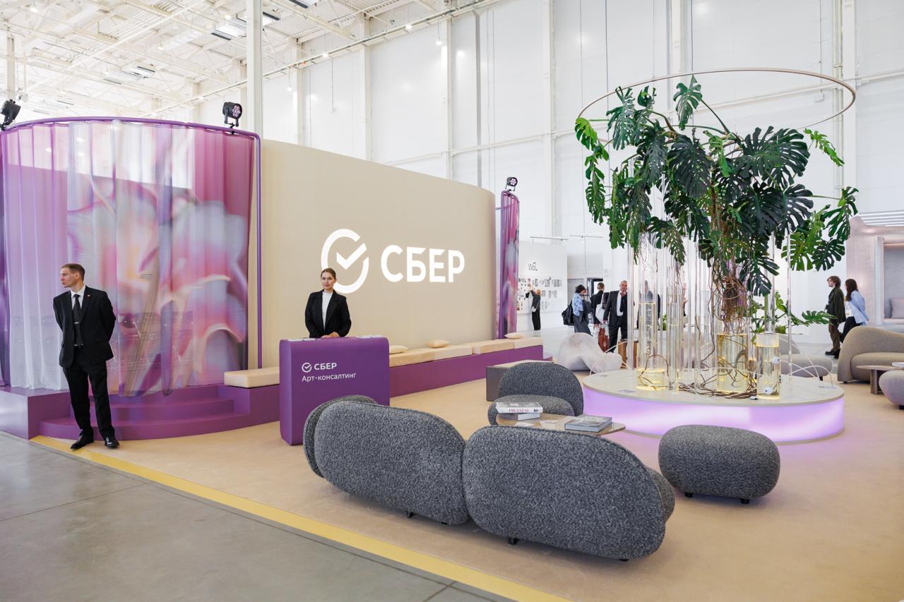 Гостиная Сбер объединила в себе искусство, технологии и персональный сервис, создавая особую атмосферу для деловых встреч, содержательных бесед и обмена идеями. Центральным акцентом стал арт-объект Ивана Карпова, созданный специально для ярмарки с помощью искусственного интеллекта GigaChat.