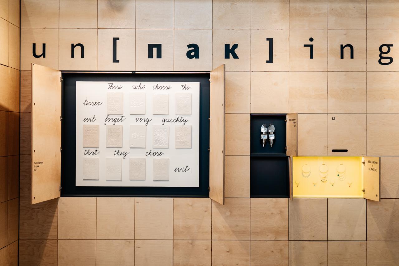 И несмотря на то, что обещала не разбирать художественную часть выставки, все же отдельно хочу выделить один стенд под названием un[ПАК]ing, который демонстрировал частную коллекцию Милы и Дениса Паков. Он напомнил библиотечную картотеку со множеством шкафчиков, за дверцами которых — работы разных художников. Среди них — один из главных нонконформистов Михаил Рогинский и Ольга Чернышева, чей проект «Улицы сна» идет сейчас в «ГЭС-2».