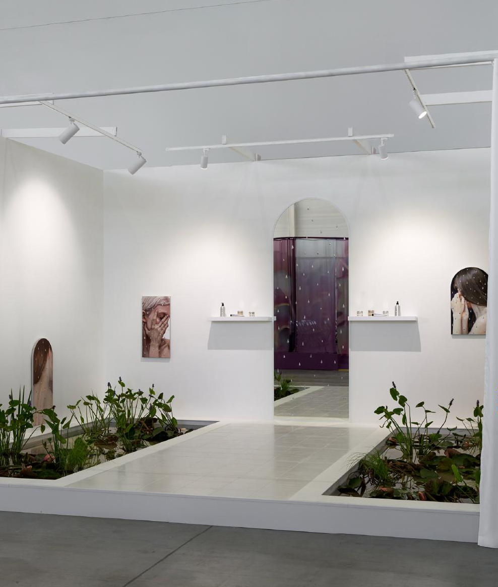 Инсталляция «Наедине» — совместный проект бренда The Act и художницы Марии Катьяновой. Коллаборация отсылает к интимной территории ванной комнаты — метафоре уединения, где время с собой становится источником силы, а ежедневный уход — актом любви и расслабления. Ванная комната превращается в «интимное убежище», где растворяются тревоги, остаются только ты, твое тело и тишина. Художница создала серию полотен, фиксирующих переход из внешнего во внутреннее: жесты прикосновений и эфемерные образы.