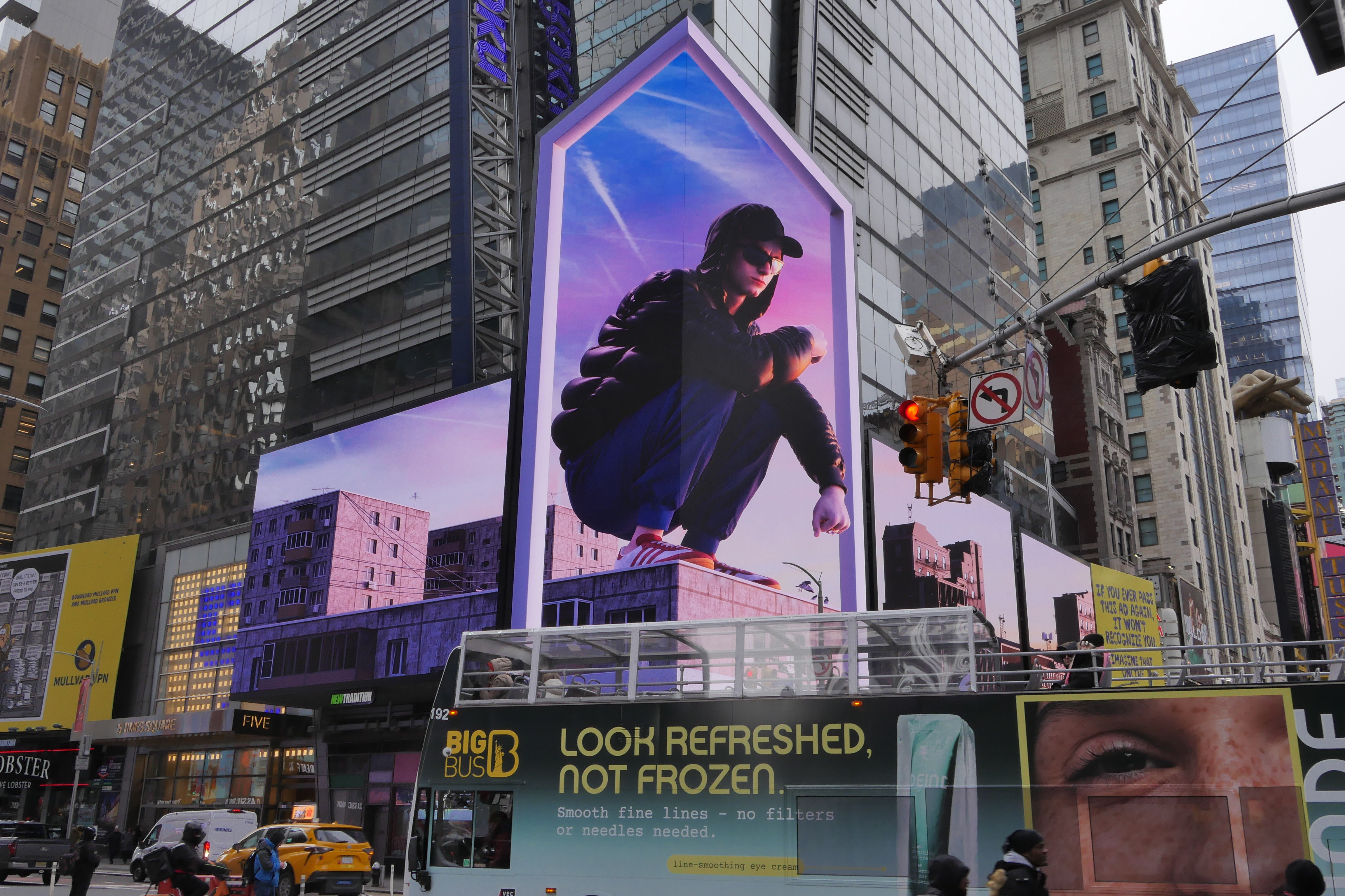 В этом году наша команда создала Naked-Eye-графику для центральных экранов Манхэттена. Среди ярких высоток появились советские панельки, а на них — типичный герой «с района», вдохновленный образом Юры Борисова, номинированного на Оскар. Ролик строится на визуальном контрасте эпох и соединяет две разные реальности. Парень, сидящий на корточках на крыше пятиэтажки, оказывается в ярком и динамичном мире Таймс-сквер. Концепция ролика — игра на узнаваемых символах, приглашение зрителя к ностальгическим размышлениям о связи времен и сближении двух культу. Кейс иллюстрирует то, как мультимедиаконтент может работать с архитектурой городского пространства и доносить необходимые смыслы до аудитории.